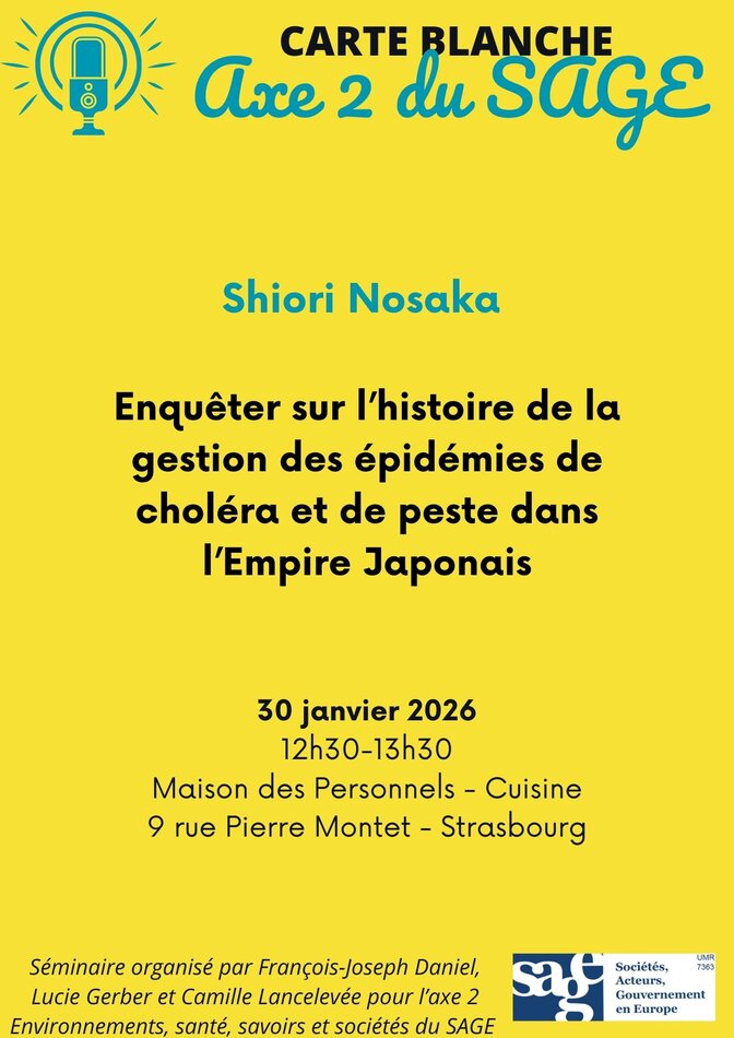 "Cette recherche, issue d'un travail de doctorat, examine l’aménagement des politiques sanitaires contre les épidémies de choléra et de peste dans le Japon impérial entre 1880 et 1930, avec une attention particulière portée à l’expertise bactériologique. À partir des années 1880, experts médicaux, acteurs de santé locaux et interlocuteurs internationaux commencent à problématiser les mesures d’hygiène publique mises en place par l’État japonais. Les savants japonais cherchent alors à expliquer le mode de transmission du choléra et de la peste, oscillant entre le modèle d’importation des maladies et le modèle d’endémie continue.