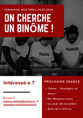 Le sémianire portera sur l'enseignement en thèse et sera présentée par Margaux Lucas.