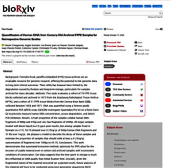 Publication récente Quantification de l'ADN humain à partir d'échantillons FFPE archivés depuis un siècle pour des études génomiques rétrospectives